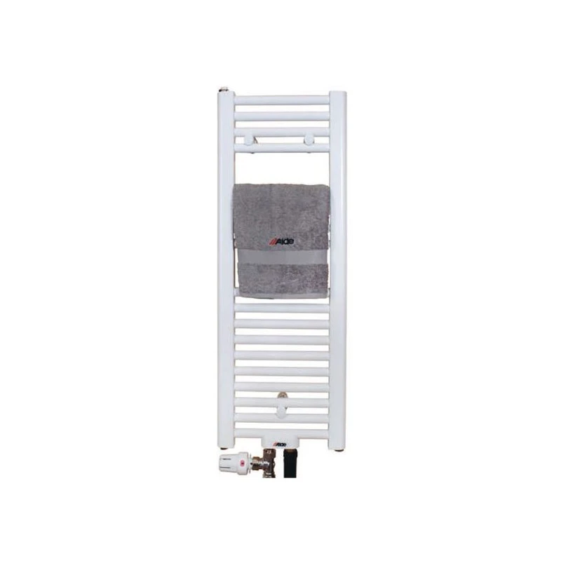 Le confort comme à la maison ! Ce chauffe-serviette est exclusif pour un chauffage d’application mobile : il est en effet livré avec son robinet thermostatique d’ambiance et la puisse de 250 W qu’il dégage permet de chauffer la salle de bain de la caravane ou mobile-home sans problème ! Fabriqué en aluminium et laqué blanc (RAL 9016), ses dimensions sont parfaites pour accueillir une ou plusieurs serviettes.