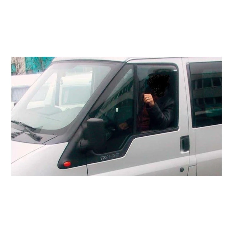 Déflecteur d’air pour les vitres avant latérales des fourgons aménagés FORD Transit a partir de 2007, modèle AEROLIFT fabriqué en acrylique légèrement teinté. La paire