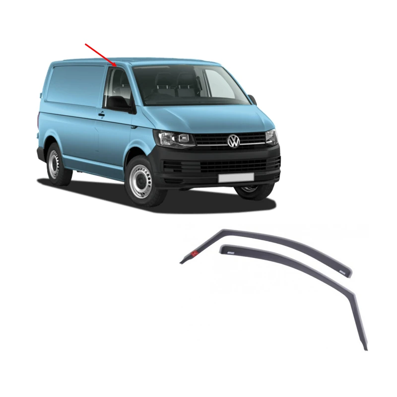 Déflecteur d’air spécial VW Transporteur T5 pour vitres latérales avant, permet de laisser les fenêtres du fourgon aménagé ouvertes par temps de pluie à l’arrêt comme en roulant. La paire.