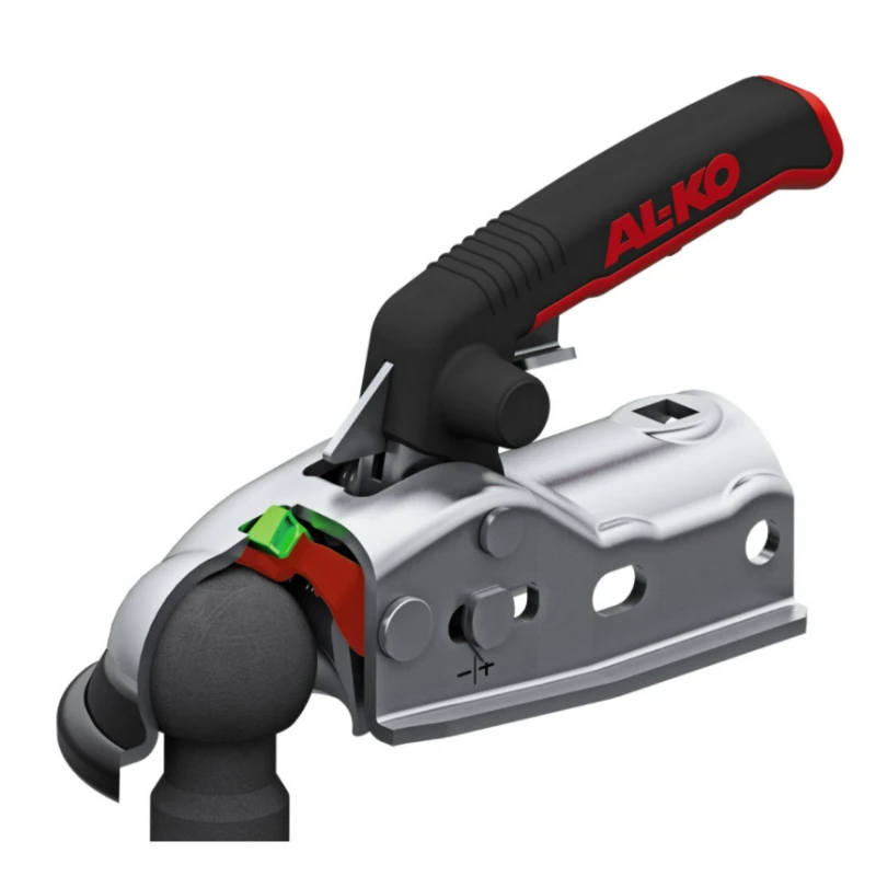 Lorsque votre tête d’attelage est correctement positionnée, le témoin de sécurité vert vous alerte, ainsi aucun risque de décrochage. La tête AK161 possède une poignée robuste en métal avec un revêtement en caoutchouc souple Soft Touch, pas de glisse possible et une prise en main habile.