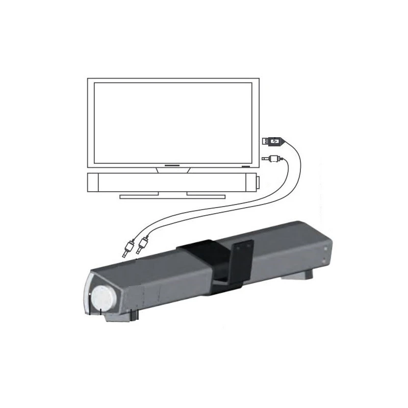Fourni avec son support, il est possible de visser la barre de son au téléviseur, les entraxes peuvent variés d’une marque à une autre. S’il ne vous est pas possible de fixer le support, la barre de son peut être seulement posée près de votre téléviseur.