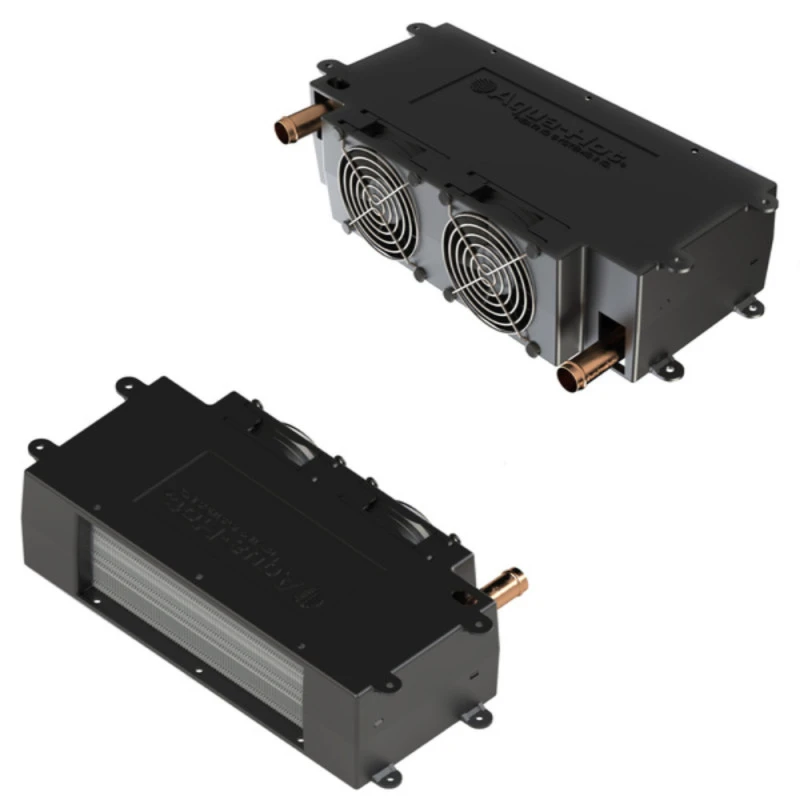 AQUA-HOT Aeroterm Cozy 3. Échangeur eau/air spécialement conçu pour les systèmes de chauffage hydronique AQUA-HOT 100D. Pourvu de 2 ventilateurs basse tension pour une transmission de la chaleur tout en douceur et en silence.