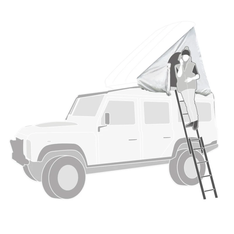 Composé de nylon et d’aluminium pour une protection supplémentaire contre le vent et le froid lorsqu’il est utilisé dans des zones humides. C’est un accessoire utile pour ceux qui voyagent dans le nord. La housse se monte en quelques secondes à l’aide de bandes velcro et peut-être laissée plié à l’intérieur de la coque de votre tente de toit quand elle n’est pas utilisée.