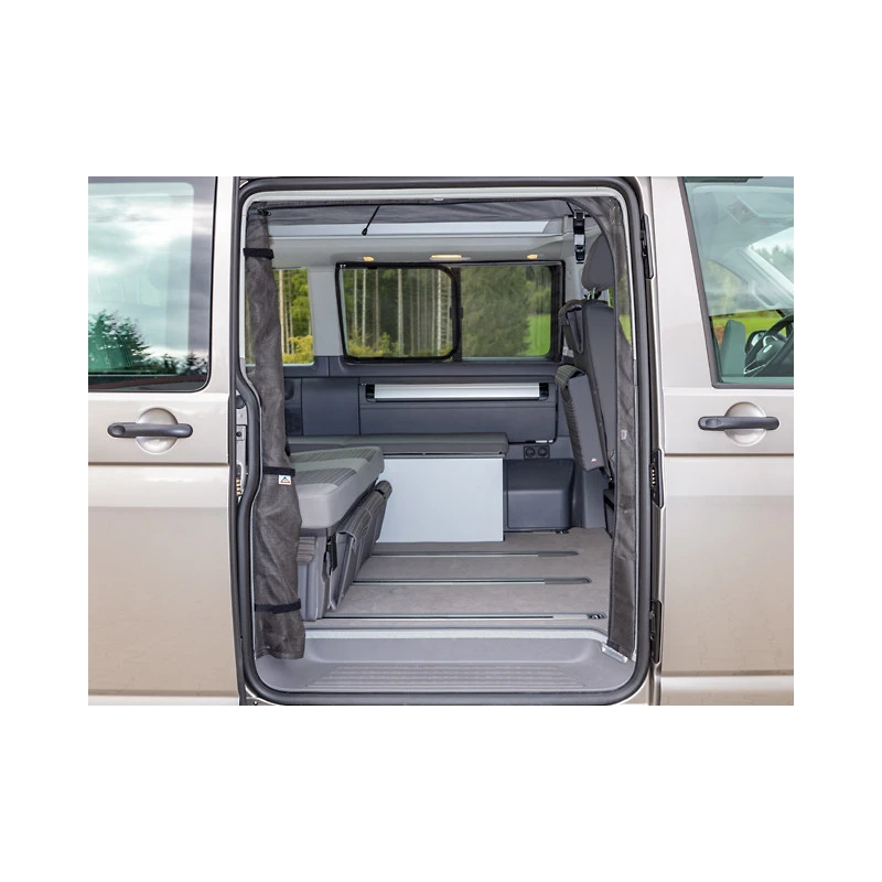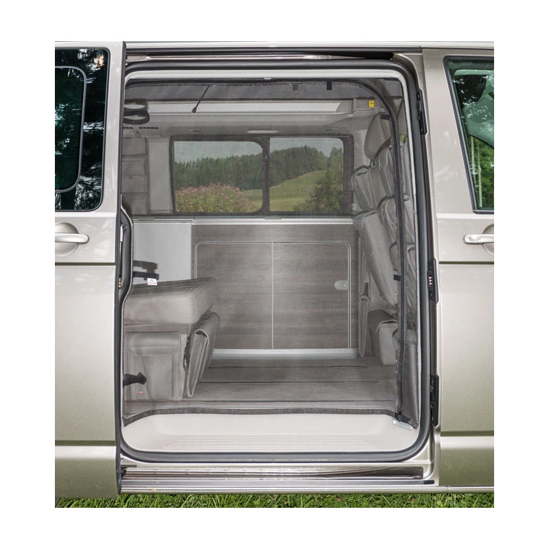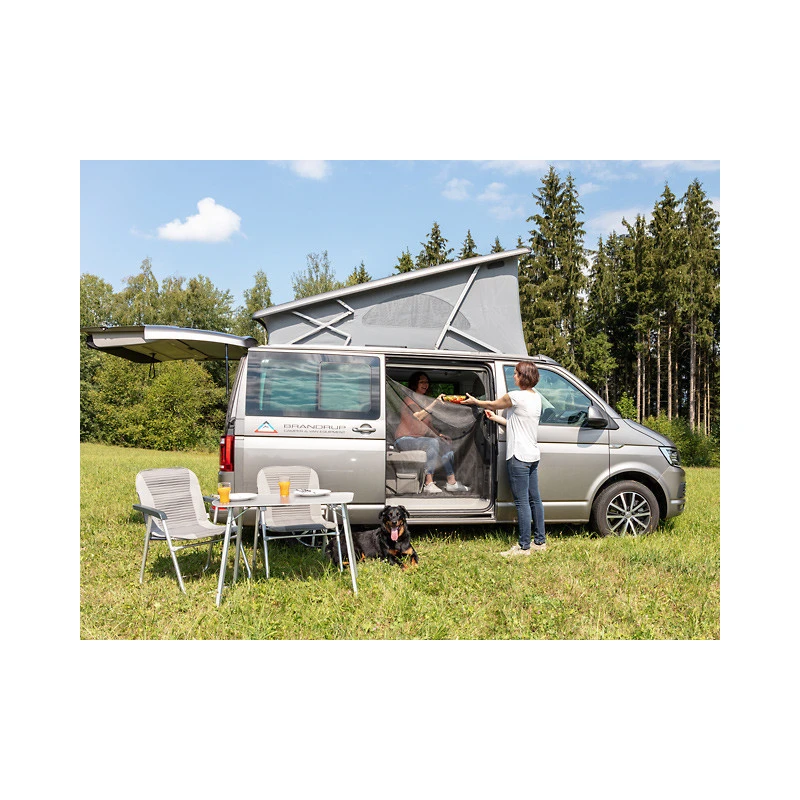La moustiquaire BRANDRUP s’installe facilement dans l’ouverture de votre porte coulissante à l’intérieur de votre fourgon aménagé T5 ou T6. Elle vous permettra de garder la porte ouverte tout en étant protégé des nuisibles, parfait pour passer une saison estivale en van aménagé sans contrainte.