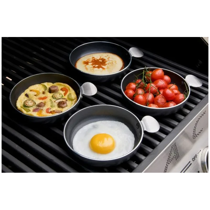 Le lot de 4 petits plats en aluminium recouverts d’un revêtement antiadhésif est idéal pour cuire tous types d’aliments sur les barbecues à gaz. Idéal pour préparer le petit déjeuner, le set tapas permet de s’adapter aux goûts de chacun !