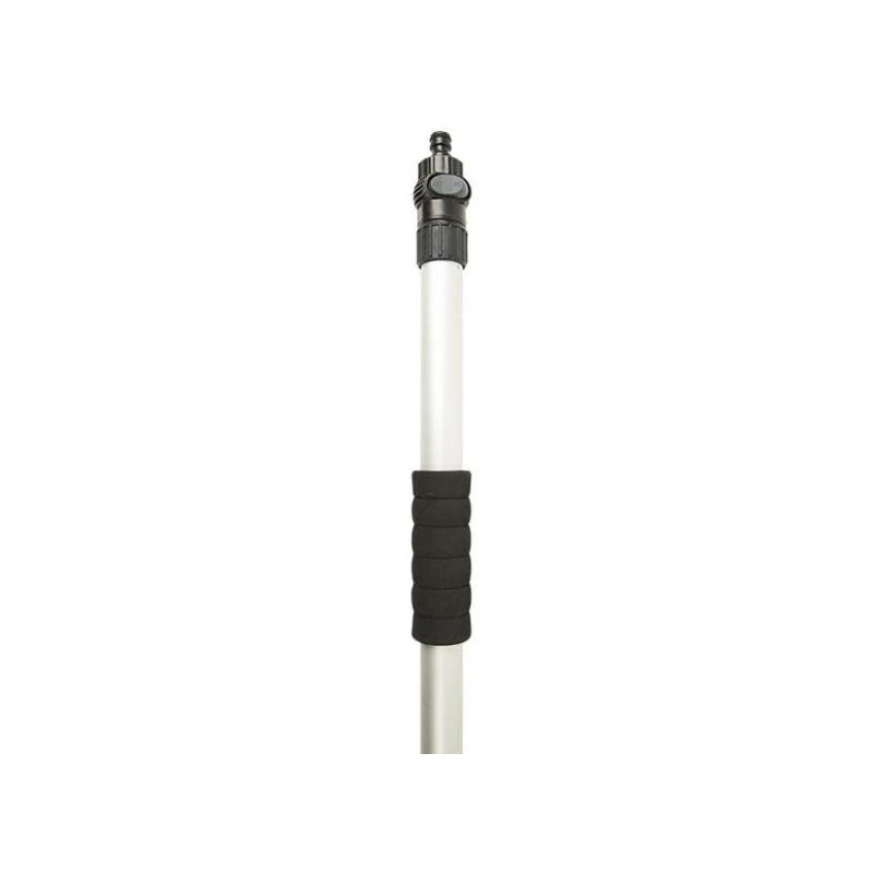 Ergonomique, le manche est télescopique de 1,2 à 1,8 m de long ; il est également doté de poignée en mousse molle très appréciables lorsqu’il fait froid car elles vous isole du manche ! Enfin, pour le rinçage, le manque est doté d’une entrée d’eau avec un interrupteur marche/arrêt !