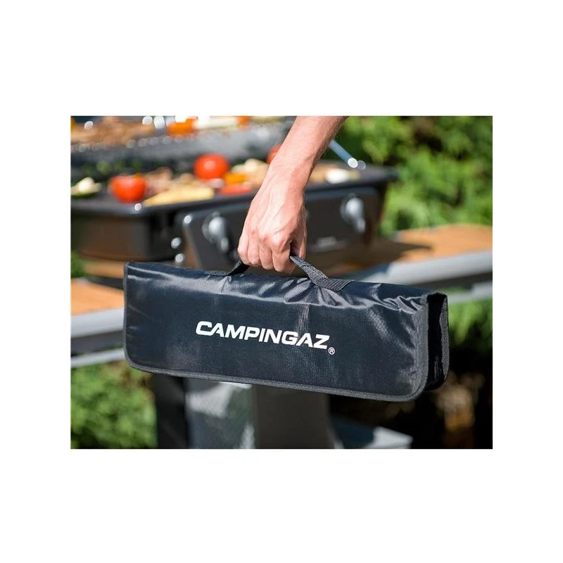 Sacoche complète, set de 5 ustensiles CAMPINGAZ pour la cuisson sur barbecue et plancha au camping, camping-car et bateau.