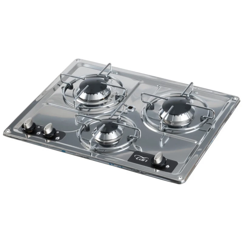 Le PC1323 de CAN est un plan de cuisson au gaz 3 feux pour cuisiner comme à la maison dans votre van, fourgon, camping-car ou bateau. Fabriqué en inox, se pose sur le plan de travail par encastrement.