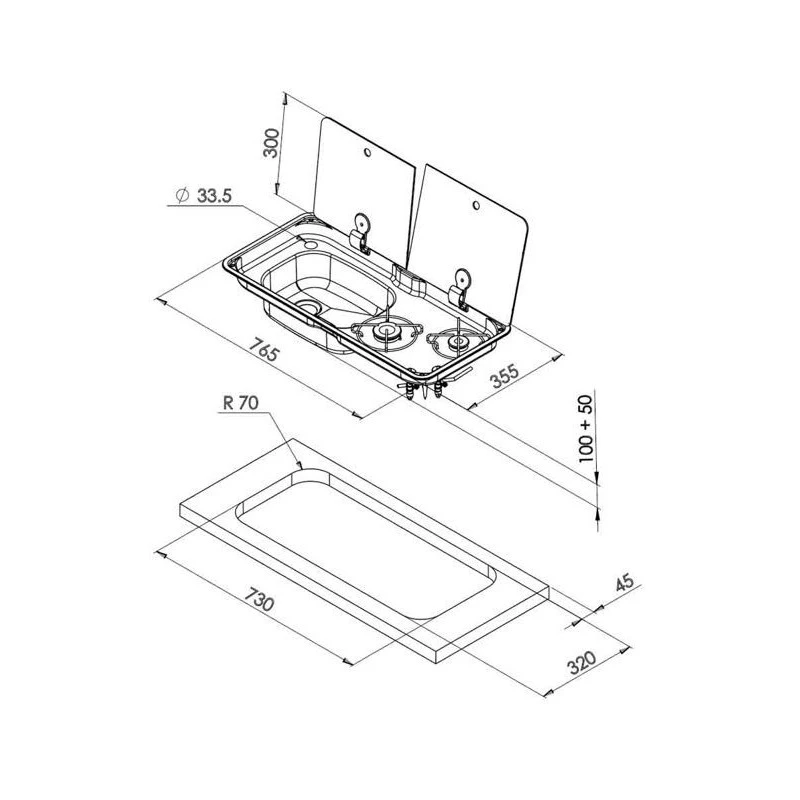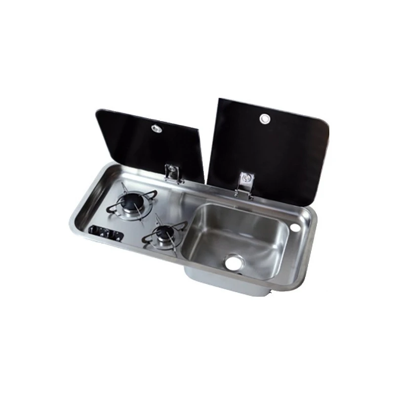 Accessoire de qualité alliant inox et verre, ce combiné est pratique pour l’aménagement des bateaux comme l’aménagement des vans, fourgons aménagés et camping-cars. De faible profondeur, il ne prends que peu de place sur le plan de travail et offre donc la possibilité d’un aménagement sur meuble peu profond en véhicule. Le double couvercle verre permet de maintenir fermé la moitié du combiné augmentant ainsi la surface de plan de travail dans le fourgon aménagé. Un véritable produit de luxe pour votre véhicule! Disponible avec évier à gauche ou à droite.
