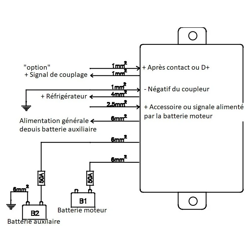 Le coupleur séparateur CBE CSB 40 SP est un coupleur commandé par câble de commande D+ aussi appelé + après contact, son principe de fonctionnent est simple et permet d’envisager facilement l’installation d’une batterie auxiliaire dans le fourgon ou camping-car qui utilisera un réfrigérateur absorbtion (trimixte).