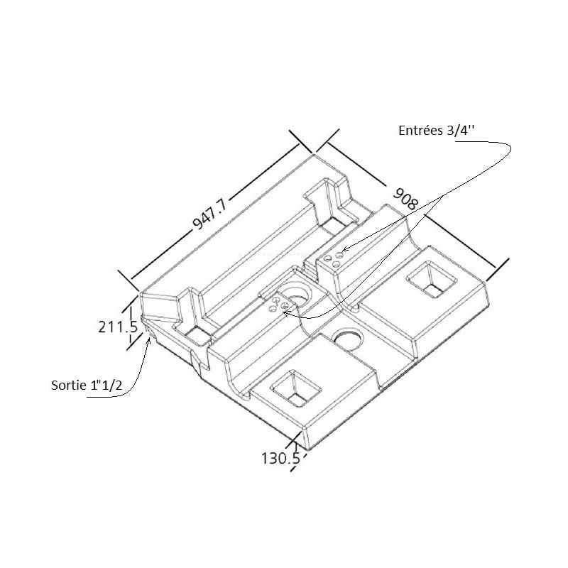 Spécialement conçu pour un montage extérieur sous le châssis du véhicule, le réservoir CHANTAL est fourni avec 2 trappes de visite et 6 entrées diamètre 25 mm.