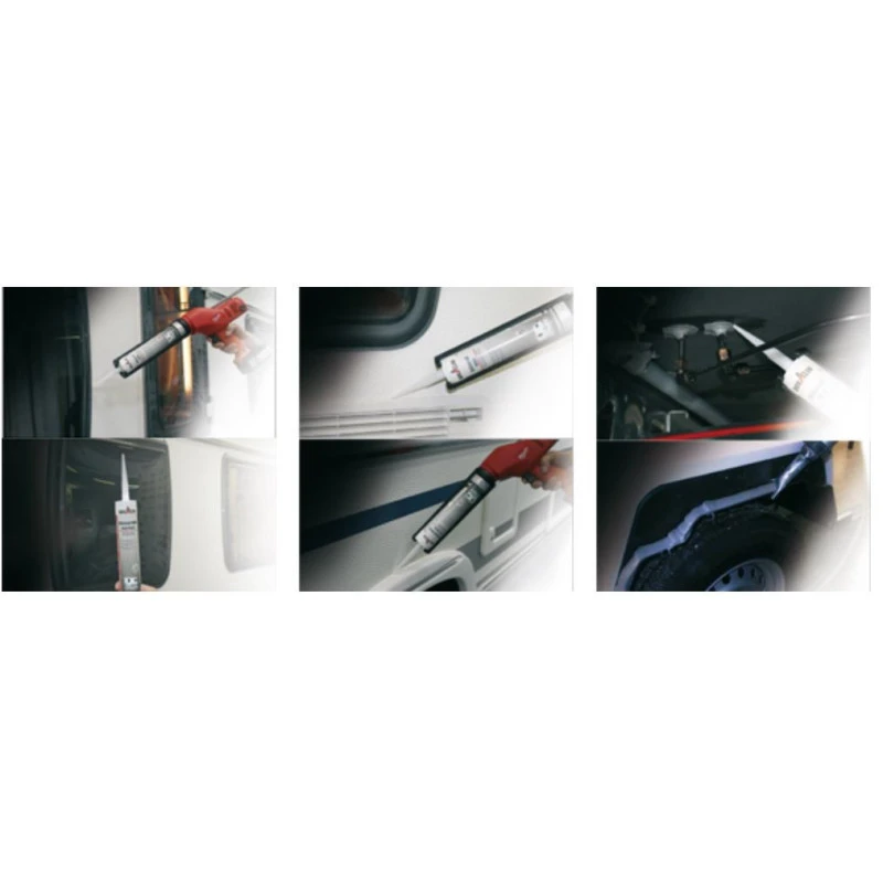 Pratique et facile à utiliser, cet équipement pour camping-car ou fourgon est livré en cartouche 310 ml et s’utilise donc au pistolet. L’application peut se faire à l’intérieur mais aussi au-dessus des raccords pour créer un joint d’étanchéité efficace et robuste. Traité anti-UV, il est d’abord conçu pour une utilisation à l’extérieur : pour faire ou refaire des joints abîmés par le temps.