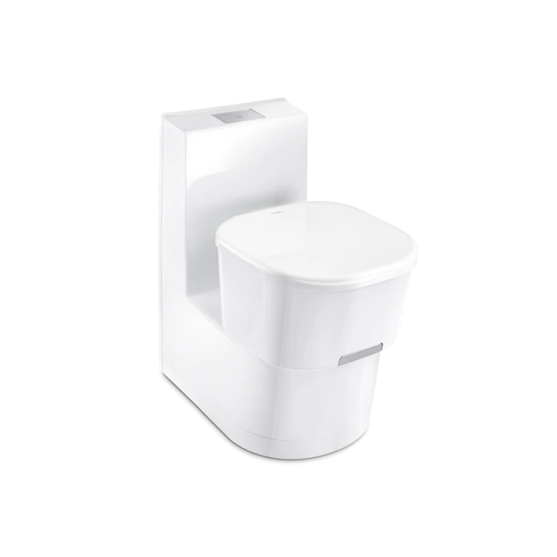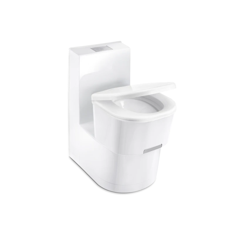 WC Chimiques à cassette et cuve pivotante 90° à revêtement céramique pour camping-car ou fourgon, le DOMETIC Saneo CW a un réservoir de rinçage intégré.