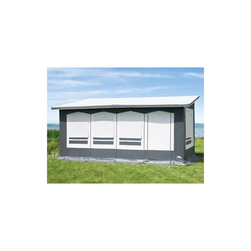 Cet auvent de caravane peut être accolé à votre caravane ou encore totalement indépendant. Avec son armature en acier, cet auvent est adaptable sur toutes les caravanes ayant une hauteur de 235 à 250 cm. Entièrement en polyester, l’auvent Favorit III est plastifiée, lavable et imputrescible.