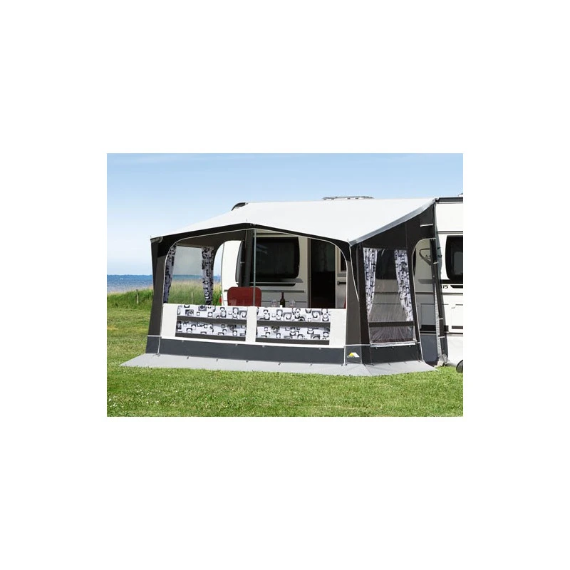 Fourni avec une armature en acier, l’auvent de caravane est élégant et entièrement modulable grâce à sa façade avant qui peut s’abaisser ou s’enlever complètement. Convaincant par son prix et sa capacité intérieure, l’auvent de caravane est un excellente compromis entre un auvent toutes saisons et une solette.