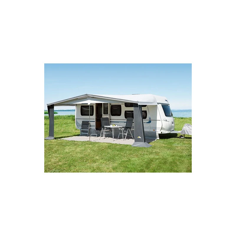 Toutes les parois sont donc amovibles pour créer un espace plus libre et ainsi profiter pleinement du soleil : l’auvent devient alors un store extérieur. Fourni avec une armature en acier pour une meilleure résistance aux intempéries. Il est également possible de rajouter des accessoires pour solidifier la structure de votre auvent de caravane.
