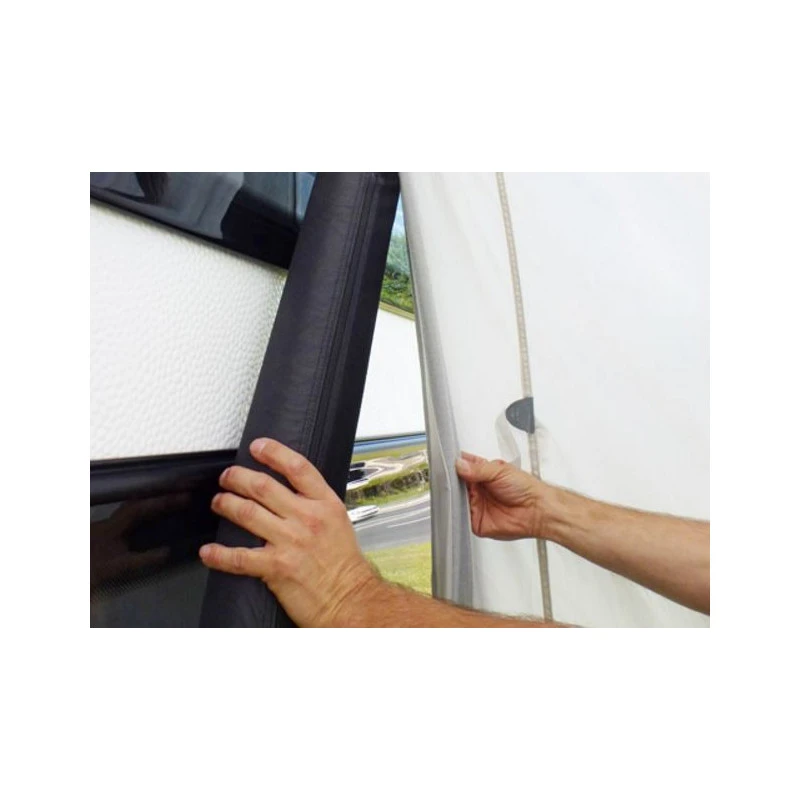 Parfait pour augmenter la taille de votre véhicule, l’auvent gonflable de camping-car Space Air offre l’avantage de se fixer rapidement il s’agit en fait d’une solution alternative aux habillages de store traditionnels type FIAMMA Privacy Room. En effet, le Space Air se fixe au camping-car via le store : un jonc vient se glisser dans le rail du bandeau frontal du store ; il est bien évidemment compatible avec toutes les marques de store doté d’un ou plusieurs rails frontaux.