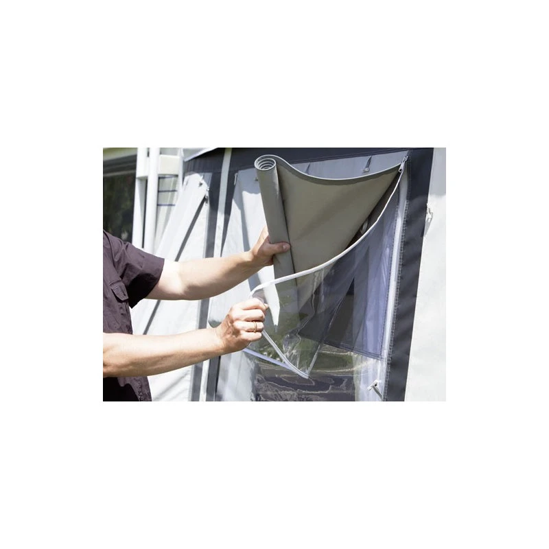 Toutes les parois sont détachables et peuvent s’enrouler, il est donc parfait pour vos sorties estivales en caravane. Son armature tout en acier lui confère une très grande résistance au vent et aux intempéries. Modulable, vous pouvez-vous même choisir à quel endroit positionner votre porte d’entré !