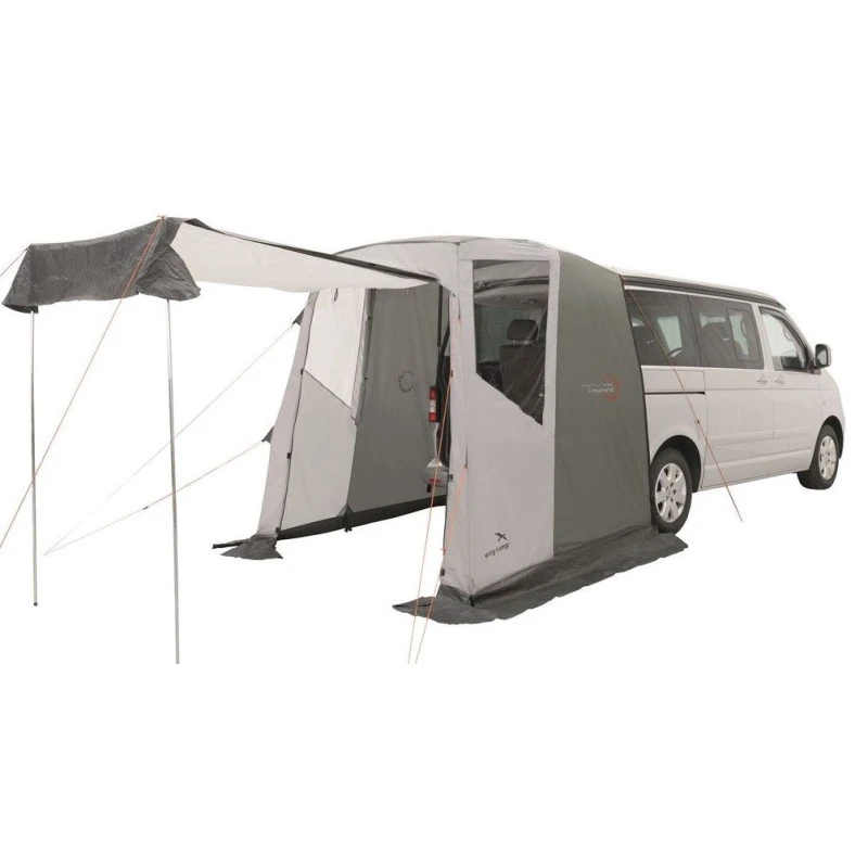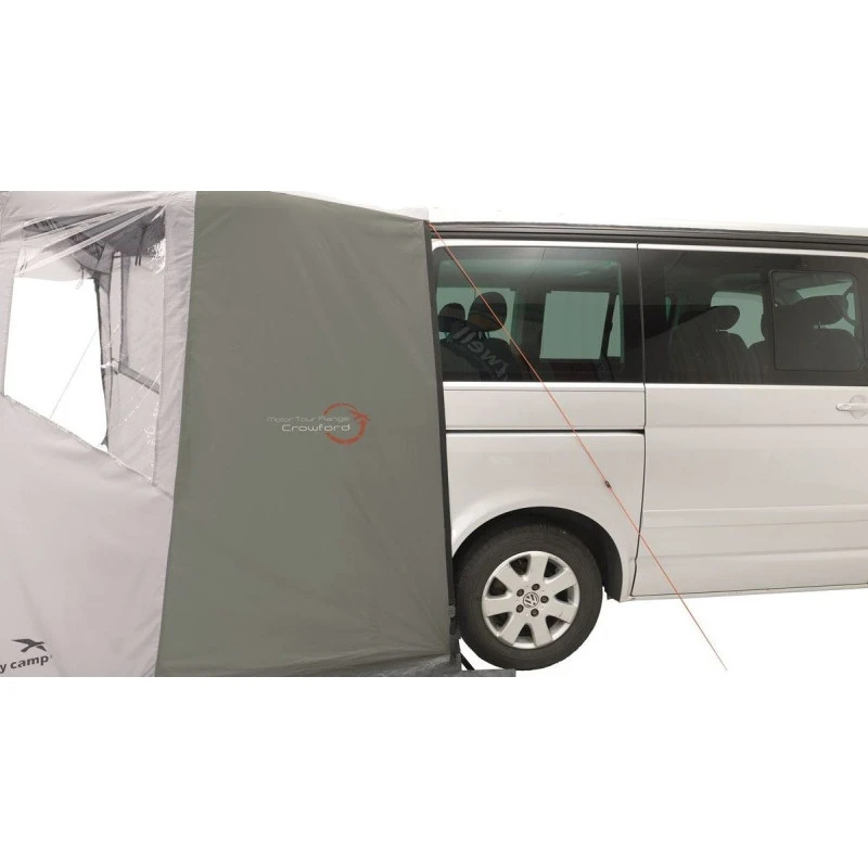Cet auvent EASY CAMP Crowford, offre un espace supplémentaire lors de vos arrêts en camping pour améliorer votre confort à bord de votre fourgon aménagé. Cet auvent est conçu pour le hayon arrière des VW T5/T6/T6.1 (Multivan, Caravelle, Transporter, California) et MB W447 (V-Class, Vito, Marco Polo).