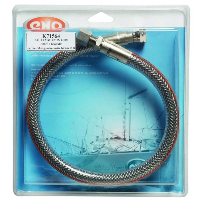 Tuyau, flexible de gaz à durée de vie permanente garantie à vie en inox ENO Flexinox marine pour bateau, d’une longueur de 1000 mm avec entrée G1/4″ et sorite pour olive 8 mm.