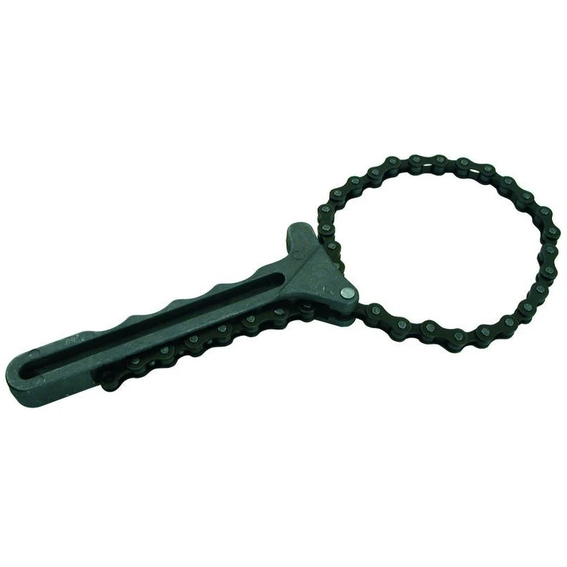 Renforcée avec 4 crans de fixation pour la chaîne, cette clé convient pour les filtres, tubes et tuyaux d’un diamètre de 10 à 100 mm maximum.