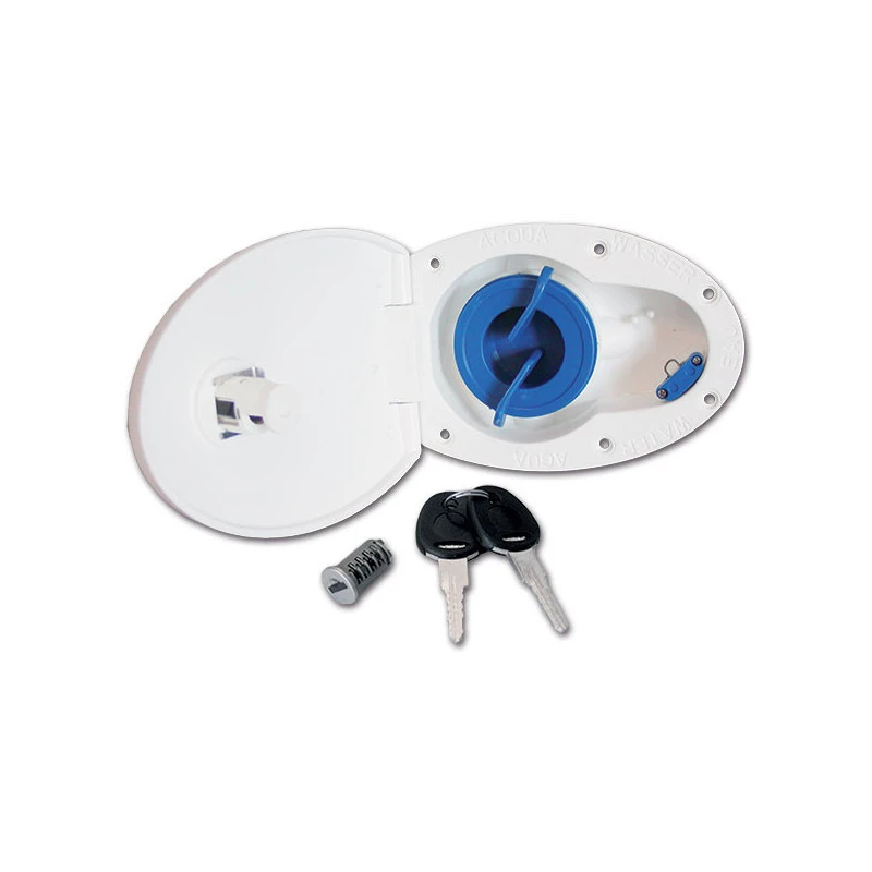 Coupelle de remplissage d’eau avec couvercle sécurisée pour camping-car et fourgon aménagé.