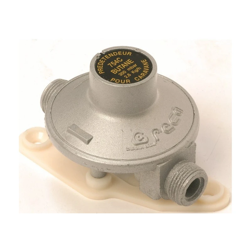 Prédétendeur pour bouteille de gaz butane de caravane ou camping-car avec limiteur de pression 300 mBar, cet équipement gaz FAVEX à un débit de 2,6 kg/h.