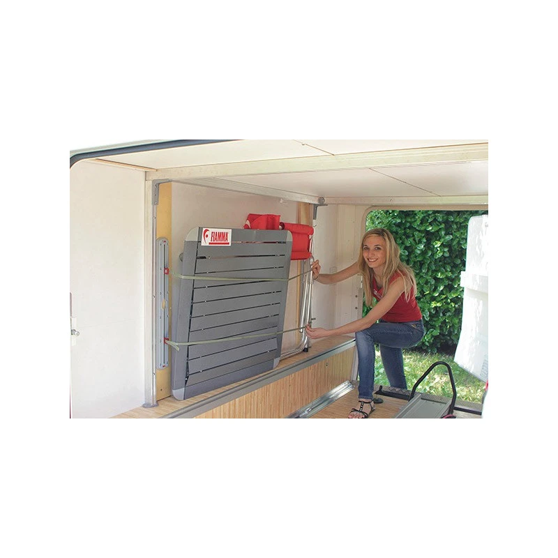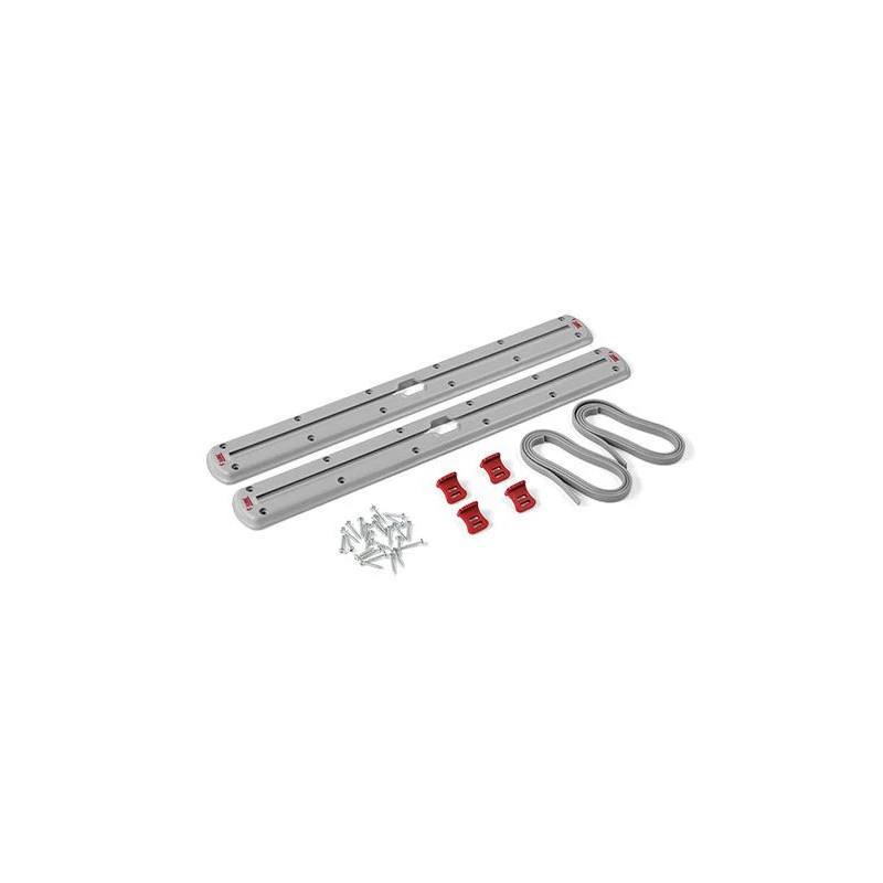 L’installation de cet équipement pour aménagement de la soute du camping-car est très simple : il suffit de fixer les rails en ABS le long de la paroi, d’y ajouter les crochets et le tour est joué ! En l’espace de quelques minutes seulement vous pourrez amarrer efficacement vos tables, chaises, roues de secours ou d’autres accessoires volumineux.