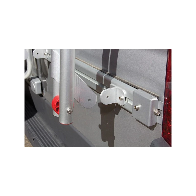 Accessoire pour fourgon aménagé en camping-car de qualité, le porte-vélo est livré de série avec deux rails et les sangles de maintiens des roues. Lorsqu’il n’y a pas de vélo, vous pouvez aussi l’utiliser pour supporter un coffre arrière type Ultra-Box pour augmenter votre capatcité de rangement (charge max : 35 kg).