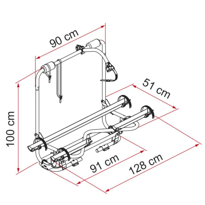 Livré de série avec une structure porte-rails en acier et barre de renfort, le PRO 300 est équipé de 2 rails Plus, 1 bras de maintien et une sangle de serrage, ce porte-vélos de caravane est un des modèles les plus aboutis du marché possédant ainsi tous les critères recherchés par les caravaniers : basculant, léger, robuste.