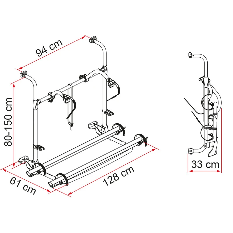 Caractéristiques techniques du Carry Bike Pro Autotrail pour camping-car après 2011 :