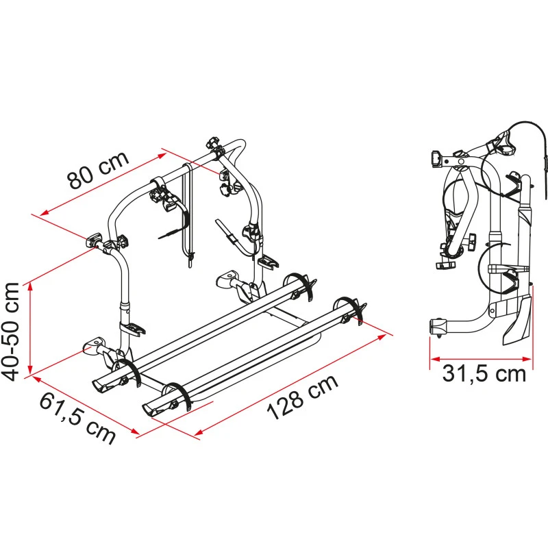 Spécifiquement étudié pour les camping-cars de la marque LAÏKA, le Carry Bike Pro L80 possède un écart de 80 cm entre les structures latérales : il se logera donc parfaitement au niveau des fixations déjà présentes sur votre camping-car LAÏKA.