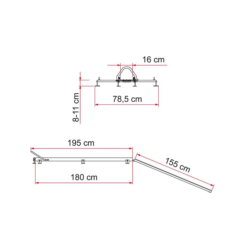 Equipement pour camping-car universel, le support porte-moto convient pour l’immense majorité des soutes ; il convient pour les motos, scooters ou mobylettes. Un fois fixé, la mise en place est très simple : la rampe d’accès est télescopique et se glisse sous le rail support. La rampe mesure 155 cm un fois déployée permettant d’offrir une pente douce pour faciliter l’accès à la soute.