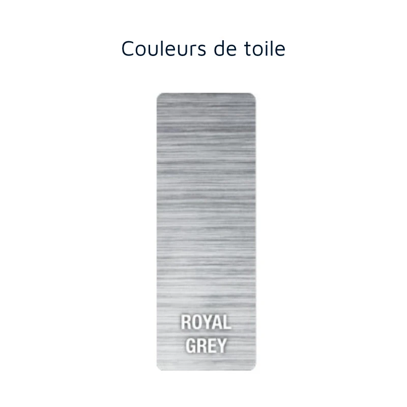La toile du store est conçue en vinyle multicouche, imperméable & très résistant aux UV ! Proposé en couleur Royal Grey : grise avec de légers motifs très sobres et passe-partout.