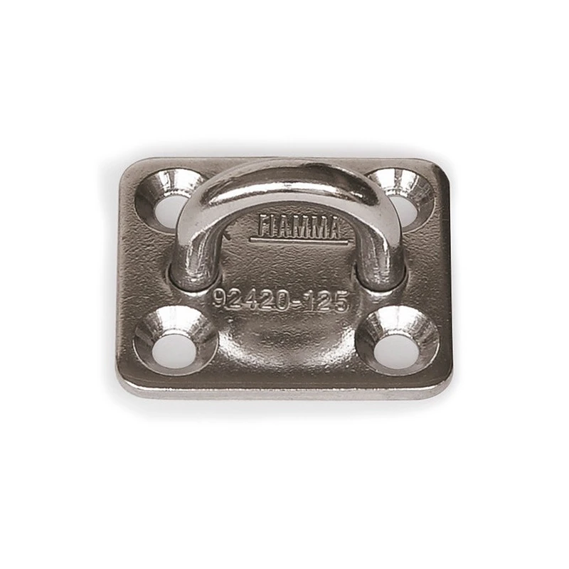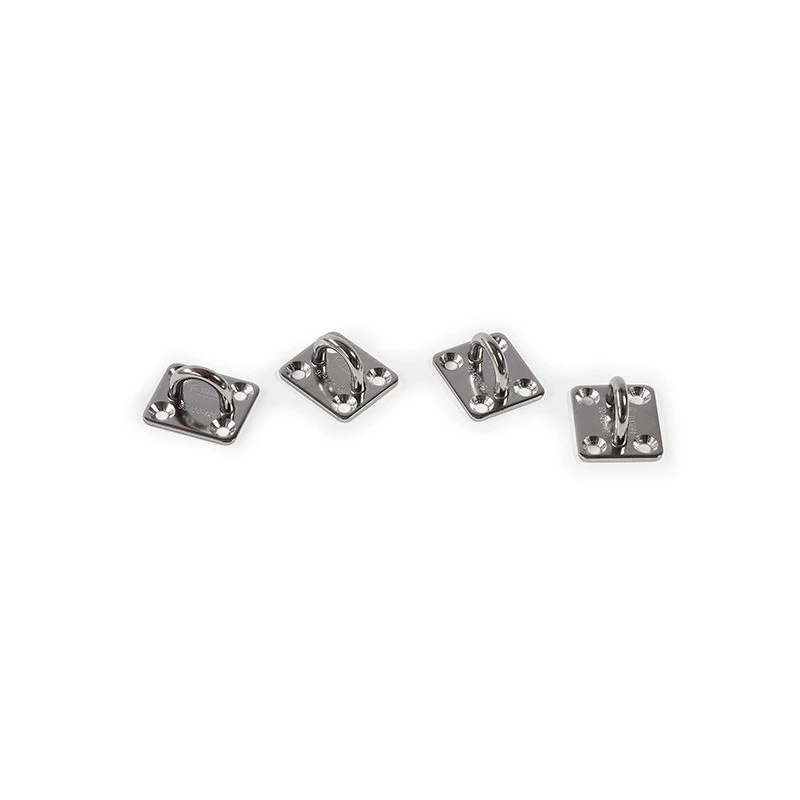 Jeux de 4 crochets en acier inox idéal pour être fixer sur la paroi ou le sol des soutes et coffres ariières des camping-car ou fourgon. Le FIAMMA Kit Square Plates est conçu pour l’aménagement des soutes.