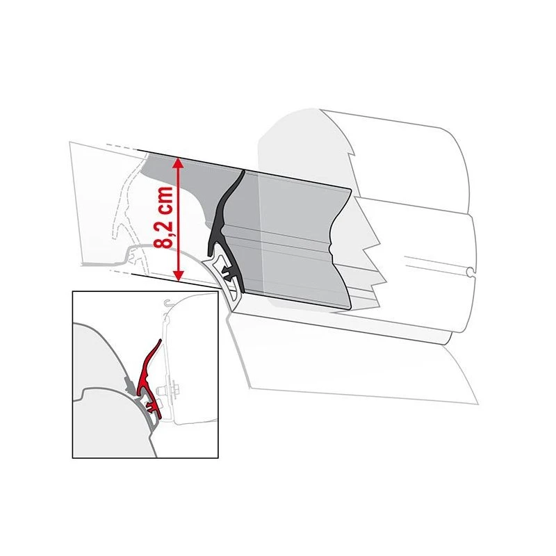 Gouttière caoutchouc pare pluie pour store extérieur de fourgon aménagé FIAMMA F45 installé sur VW T5 & T6 California, bande de 2 mètres à installer au-dessus de la porte latéral.