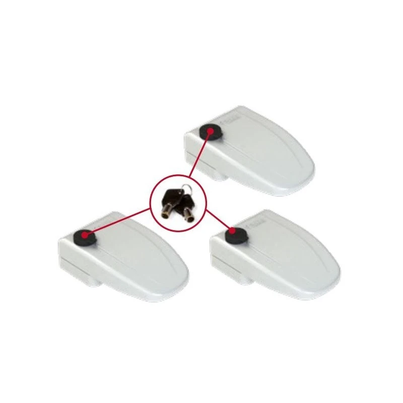 Jeu de 3 serrures FIAMMA Safe Door avec clé identique pour le blocage des portes de coffres et cellule des camping-cars & fourgon aménagé.