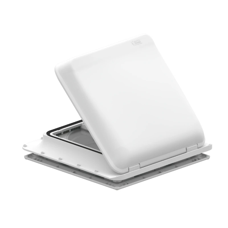 Le lanterneau FIAMMA Turbo-Vent Premimum est doté d’un ventilateur 12 V à commande tactile, dimensions de découpe 40 x 40 pour s’encastrer sur tous les camping-cars et fourgons aménagés.