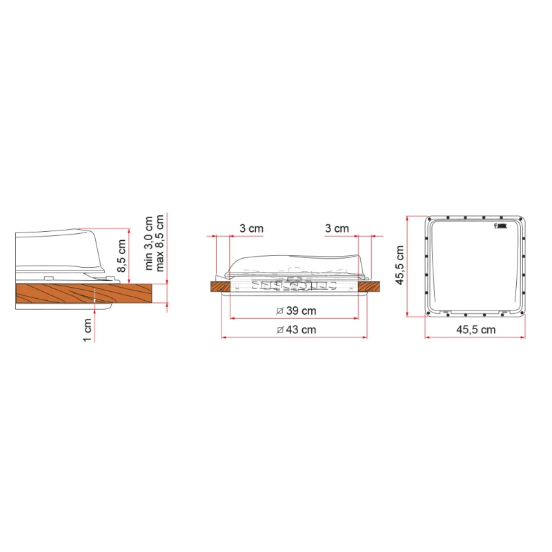 Spécifications techniques du lanterneau pour camping-car et fourgon FIAMMA Turbo-Vent Premium :