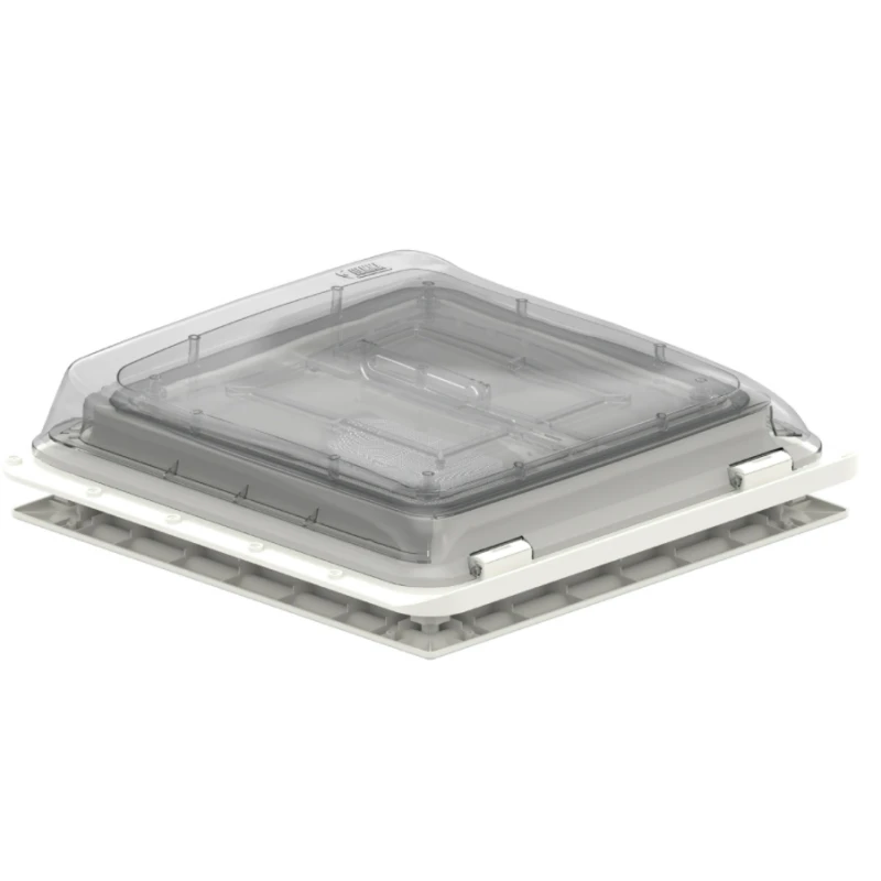 2 couleurs de cadre intérieur vous sont proposés : crème ou blanc et son couvercle extérieur est disponible en Cristal transparent mais vous pouvez aussi le choisir en blanc opaque. En plastique anti-UV résistant le lanterneau FIAMMA possède également une aération permanente, idéal pour l’aménagement de votre fourgon.