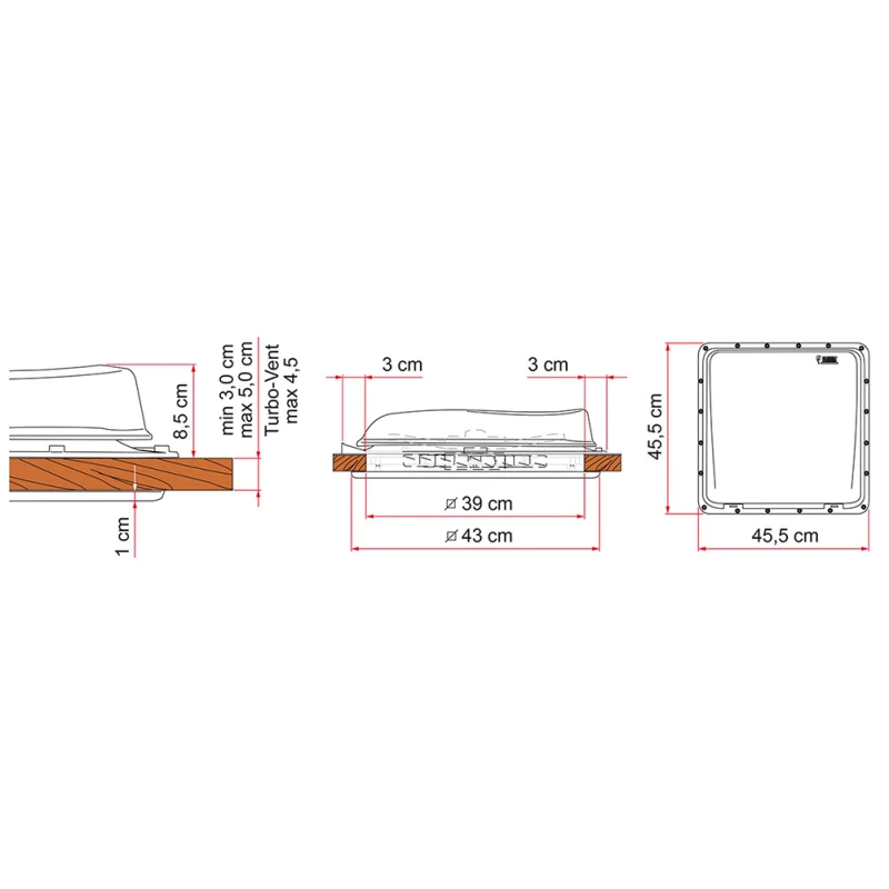 Caractéristiques techniques du lanterneau FIAMMA Vent 40 pour camping-car et fourgon :