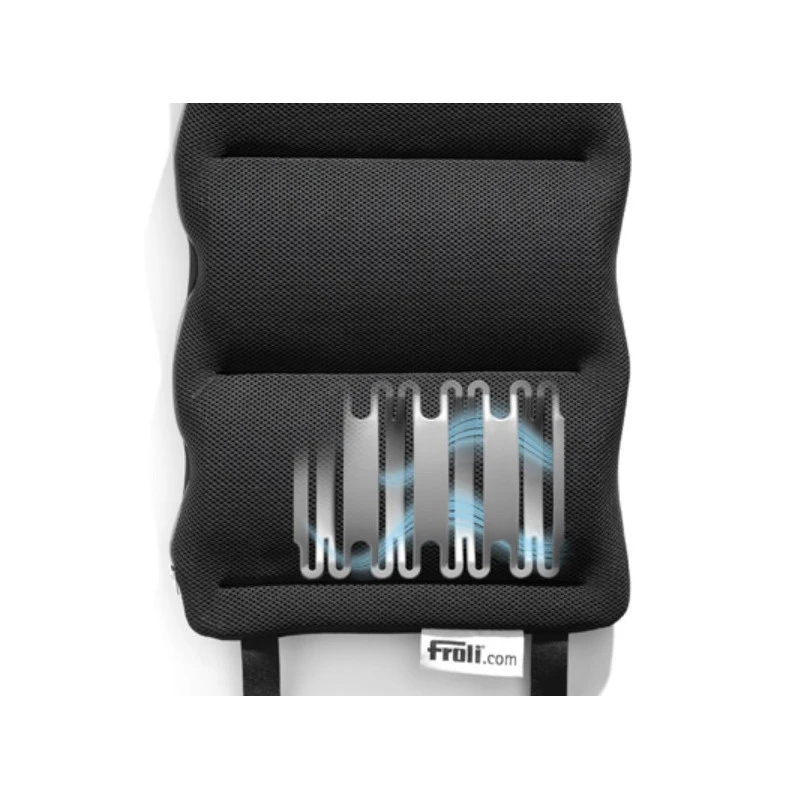 Rembourrage de dossier FROLI à placer sur les fauteuils et sièges de la cabine de votre camping-car, fourgon ou van aménagé. Permet d’améliorer le confort en route et de « ventiler » votre dos. Respirant et protecteur.