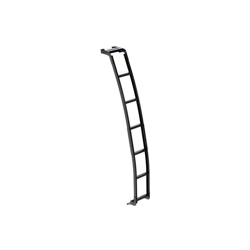 L’installation de cette échelle de galerie nécessite un perçage sur la garniture inférieure du véhicule. La partie supérieure se fixe sur le profilé latéral de la galerie de toit Slimpro.