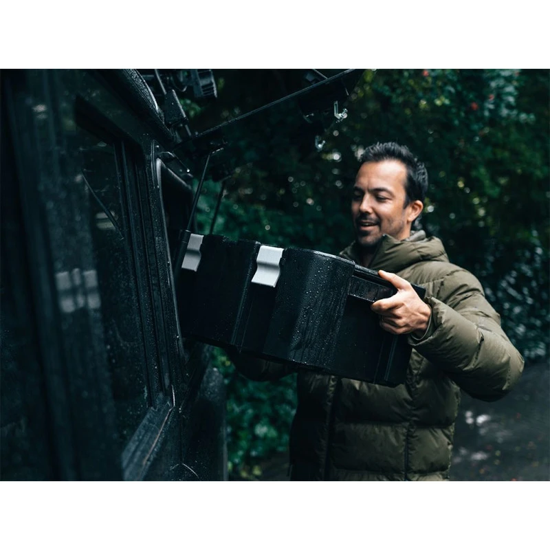 Si vous souhaitez installer cette malle de rangement Wolf Pack sur votre galerie de toit, il vous suffit de vous équiper du support de galerie FRONT RUNNER pour Wolf Pack Pro ou des sangles Stratchits FRONT RUNNER ainsi que des œillets d’arrimage FRONT RUNNER.
