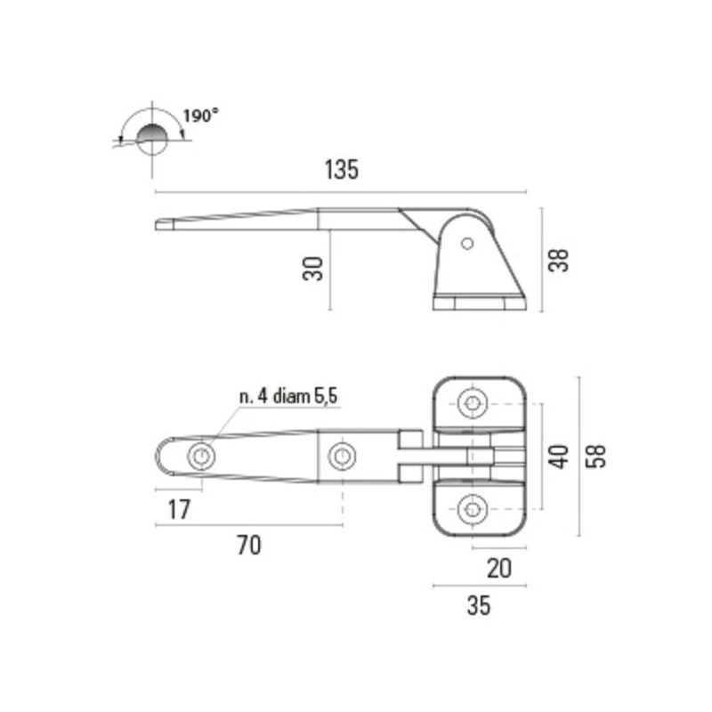 Caractéristiques de la charnière pour camping-car et bateau FORESTI & SUARDI :