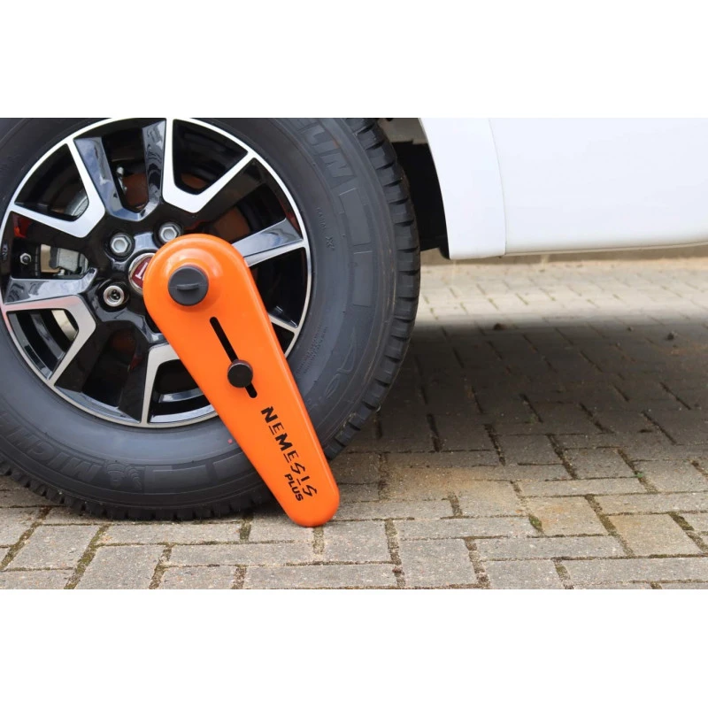 Le Nemesis Plus est un sabot antivol universel de FULLSTOP haute qualité pour roue de caravane et remorque de bateau avec jante de 10 à 20″. Verrouillage à clés.