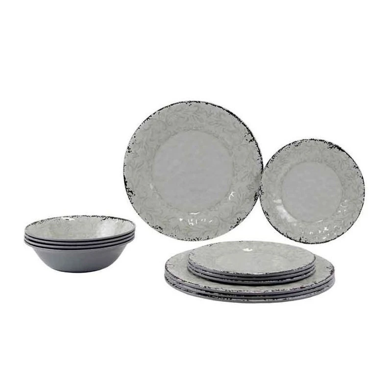 Elégante vaisselle en mélamine « effet pierre » GIMEX Stone Line idéal pour l’équipement du camping-car, fourgon aménagé et bateau.