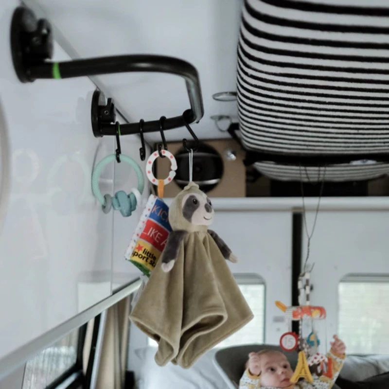 Compact et très facile à installer, vous pouvez tout à fait l’utiliser à l’intérieur de votre véhicule. En effet, grâce à ses 4 crochets en forme de « S » fournis, vous pourrez égoutter vos ustensiles de votre cuisine mobile par exemple, ou encore finir d’étendre votre combinaison de surf dans votre salle de bain une fois rentré chez vous !