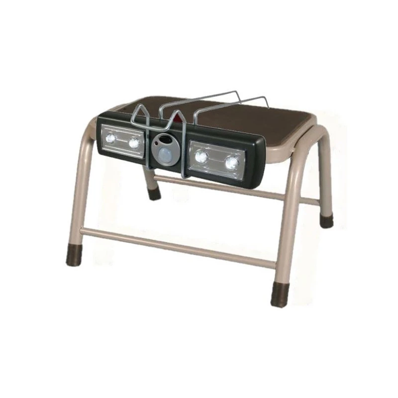 Cet équipement pour camping-car vient se fixer sur la marche du marchepied, alimenté par 3 Leds type AAA il s’allume automatiquement lorsque vous approchez. Qui n’a jamais faillit tomber la nuit en montant ou descandant du marchepied ? Avec cet équipement HABA, les risques sont limités.