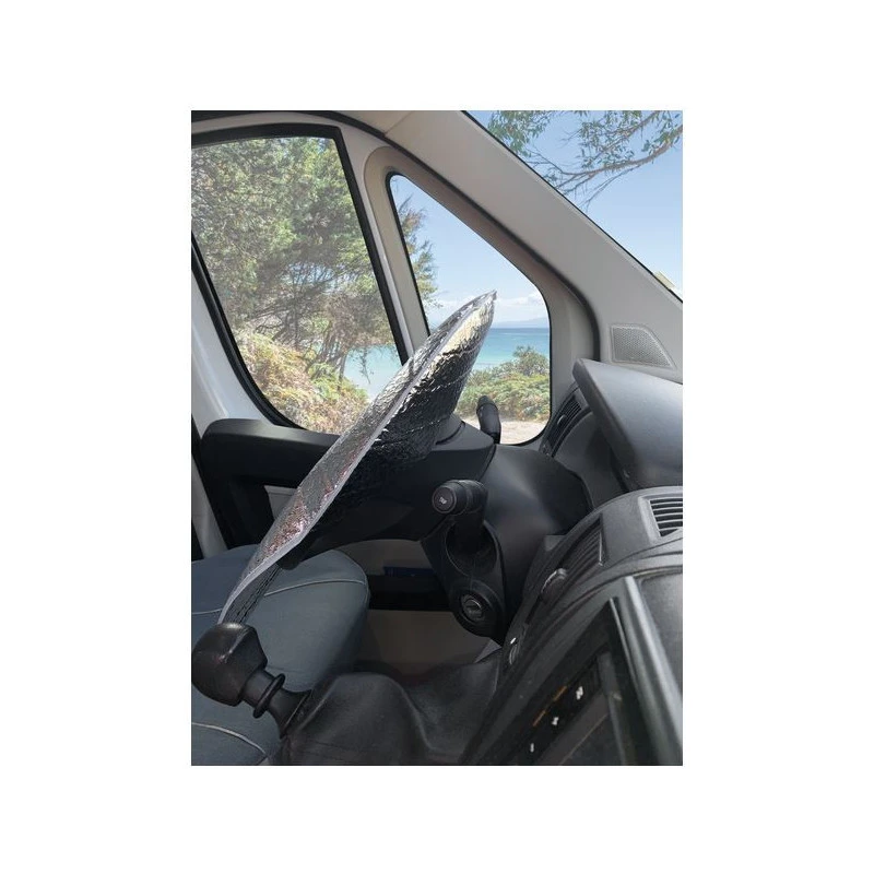 Rapidement mis en place et enlever, il n’y a ni élastique ni sangle, le pare-soleil se pose simplement sur le volant. Il convient notamment pour les fourgons sur porteur FIAT Ducato (et similaires Jumper / Boxer) et MERCEDES Sprinter.